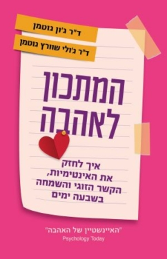 בחנו יותר משלושת אלפים זוגות במעבדת האהבה, אחרי חלקם עקבנו במשך כעשרים שנה, וחקרנו יותר מארבעים אלף זוגות שעמדו להתחיל טיפול זוגי. צפינו באינסוף שעות של הקלטות. צברנו מיליוני נתונים. ומה שגילינו הוא, שיש גורמים אוניברסליים שגורמים למערכת יחסים להצליח או להיכשל, ומנבאים אם בני הזוג יישארו לחיות יחד באושר, או לא.